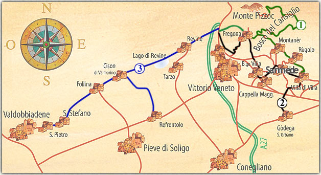 Vittorio Veneto, 30.000 abitanti è capoluogo di comprensorio. Dista km 8. E' collegata a mezzo ferrovia con Belluno e con Conegliano, snodo della linea Venezia-Udine. |